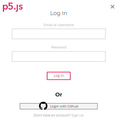 p5.js のウェブエディタ(https://alpha.editor.p5js.org/)にアクセスして利用します。(右図)