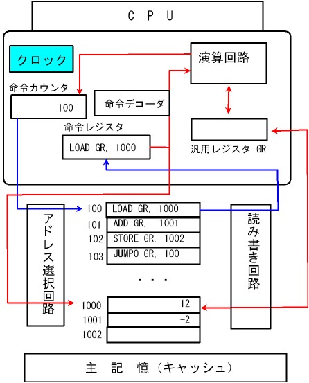 - 主記憶装置とCPUの間で処理・計算が行われ、
