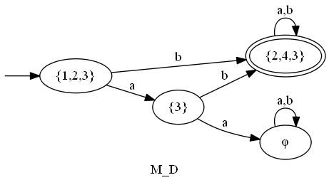 - ラベル列$w$で到達する状態は、もとの(非決定性)オートマトンで$w$で到達可能な状態の集合
