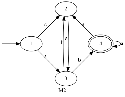 - 2つの有限オートマトンから、それらが認識する文字列集合の連接を認識する有限オートマトンを作る