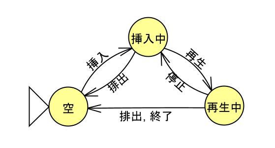 - DVDの状態遷移図に、早送りや巻き戻しボタン(機能)がある場合の状態遷移図を描け