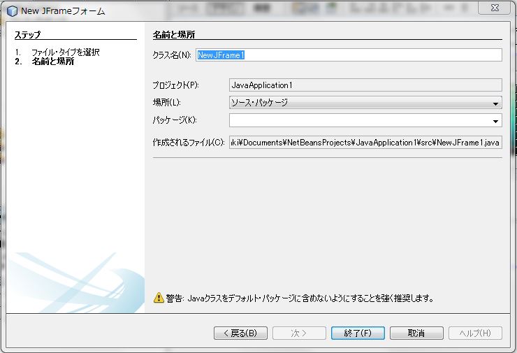 2) SwingGUIフォーム →JFrameフォーム を選択して【次へ】