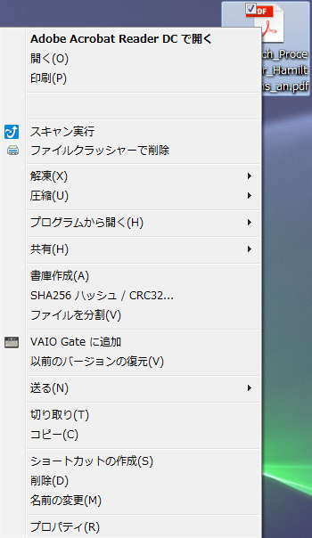 マウスの右ボタンクリック→ファイルの実行を選ぶか