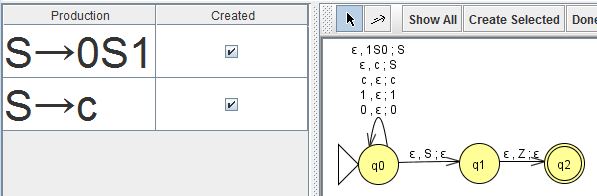 JFLAPファイルはXML文書で、これをJFLAPに読込ませると右図左側のように表示され、PDA変換で得られる