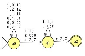 $\cup\,\{(q_1,a,a;\varepsilon,q_1)\mid a{\in}\Sigma\}\cup\{(q_1,\varepsilon,Z;Z,q_2)\}$