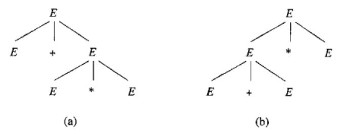 $a*b$の導出木は1つ(右上図)であるが、本質的に同じ導出を複数持つ。