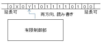 【一方向から記号の追加・読出し(取出し)ができる補助記憶装置】